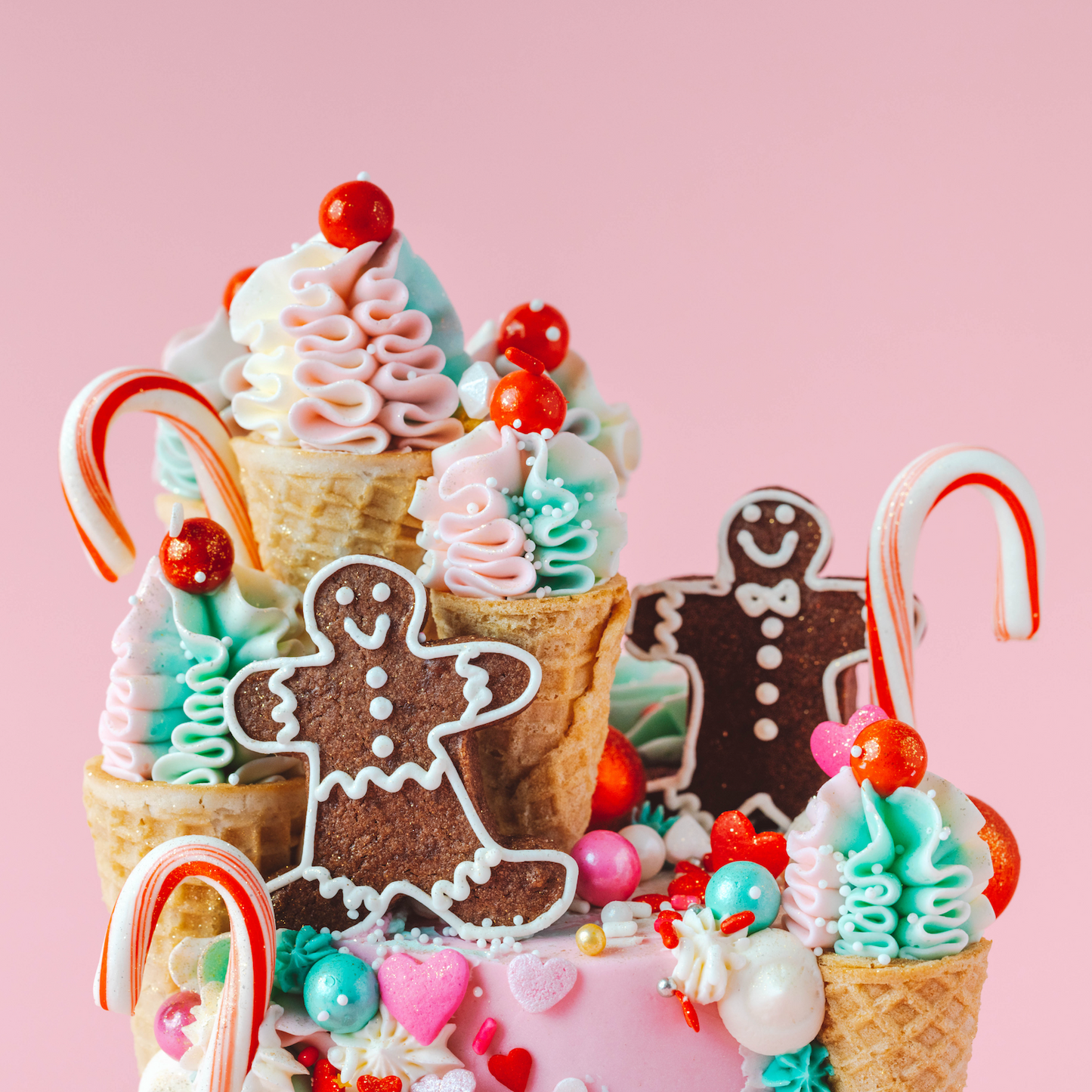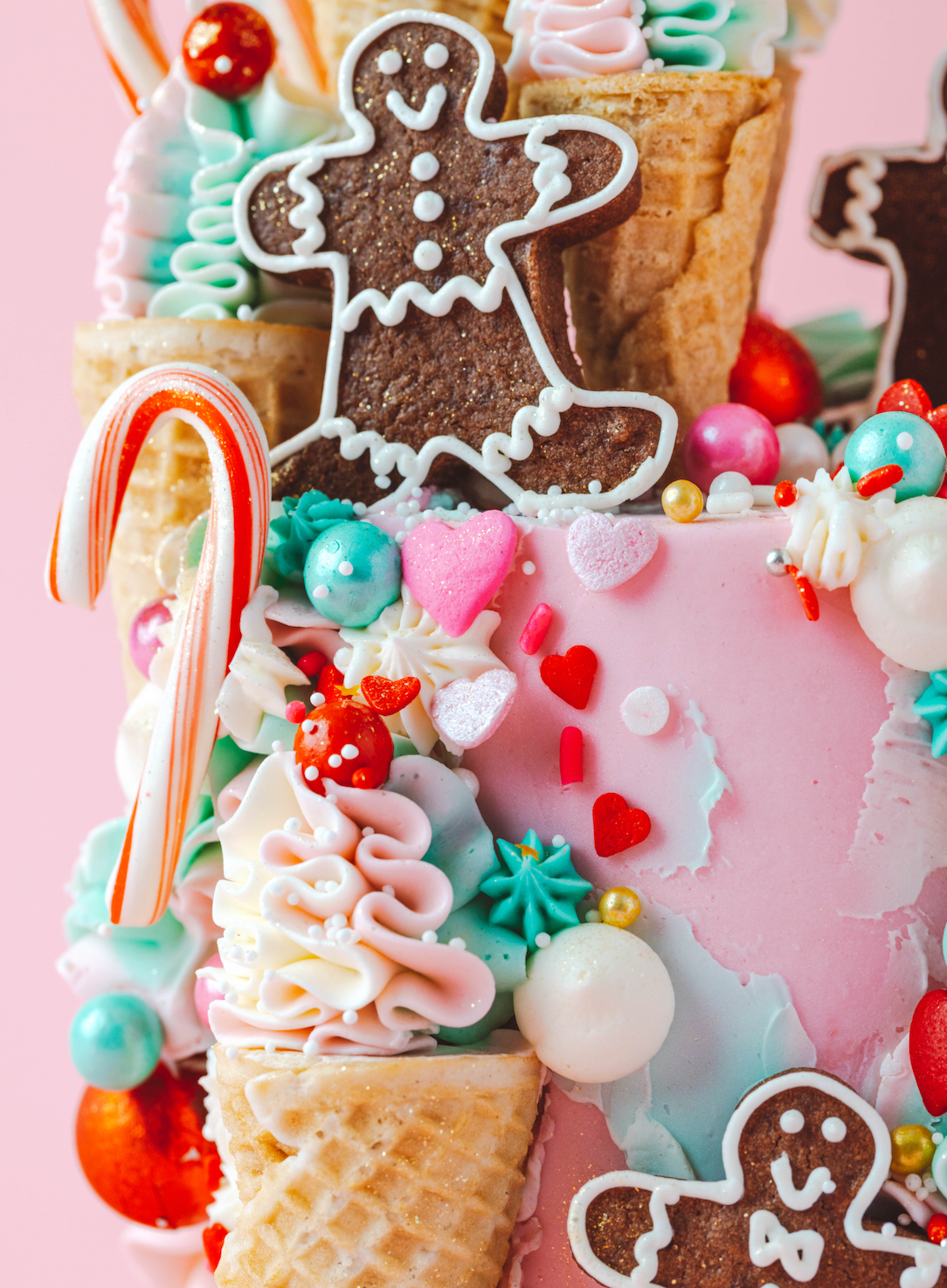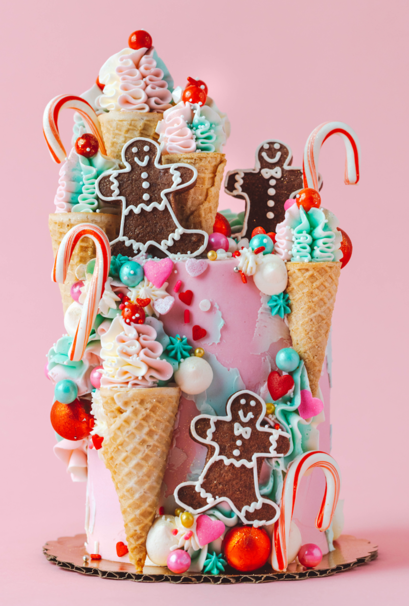 The Gingy Boys are back! In this 3 hour class you’ll stack, cover, and decorate a 4 inch chocolate cake with Gingy Boys, candycanes, and truffle-stuffed ice cream cones with pastel swirls of buttercream! Each cake serves up to 8 people and can be stored in the refrigerator for one week after assembled or in the freezer for up to 1 month.