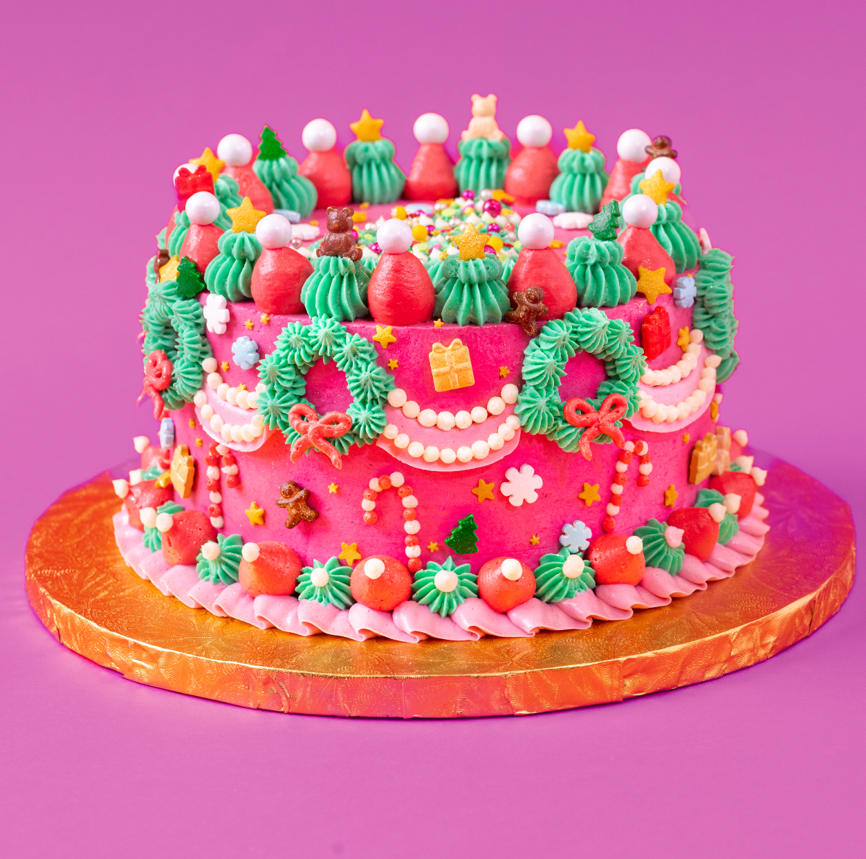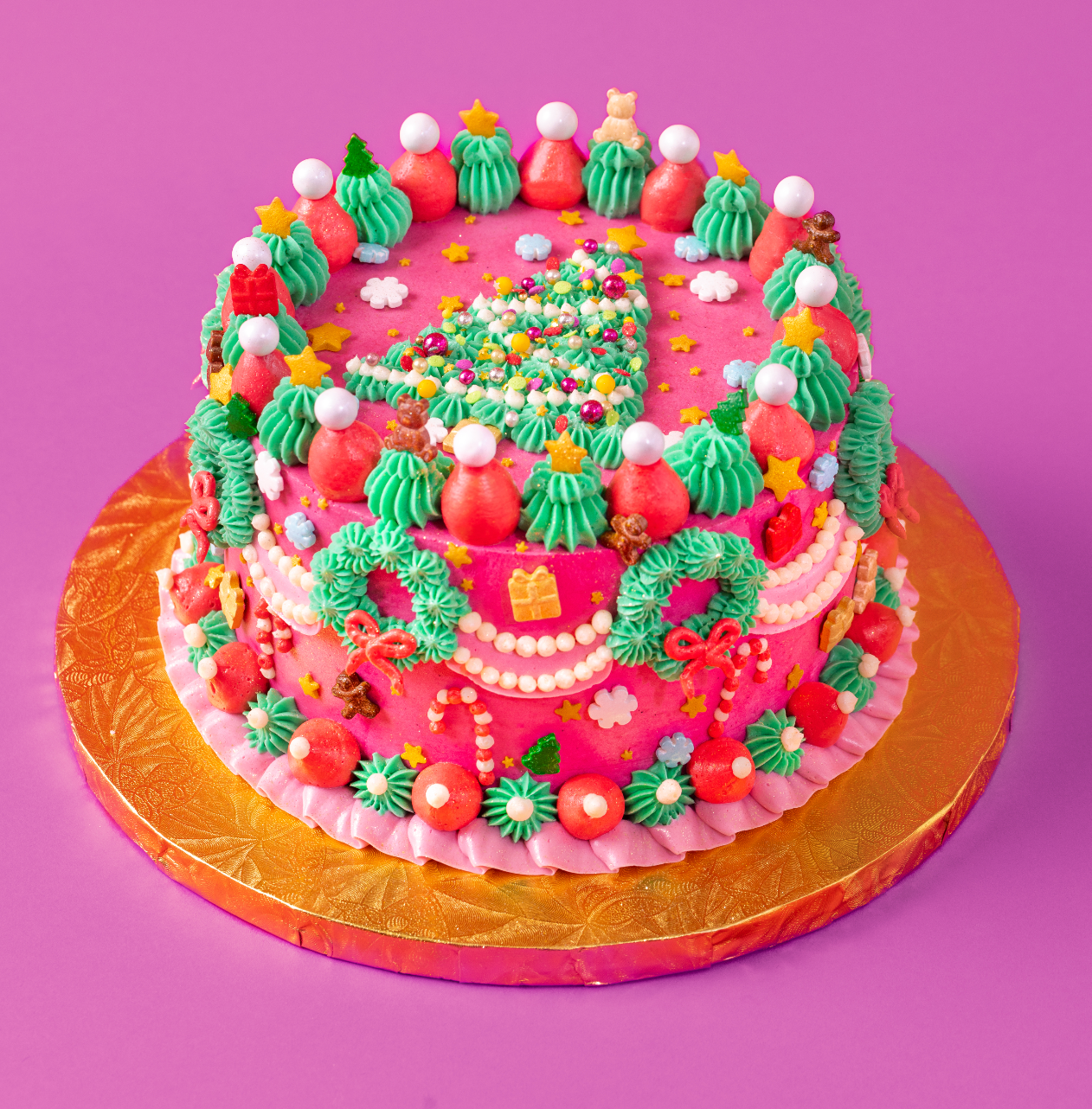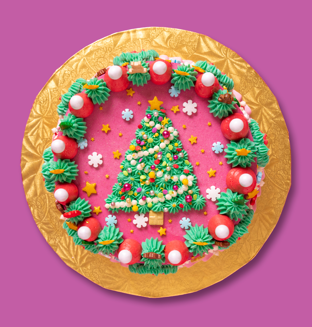 This 3 hour class is designed for beginners! You’ll deck your 6-inch Christmas Funfetti Cake with a cookie crunch filing with buttercream swags and wreaths before topping it with a glittering tree. Not to mention an assortment of decorative sprinkles to add that extra dash of holiday cheer. Merry & Bright serves up to 10 people and can be stored in the refrigerator for one week after assembled or in the freezer for up to 1 month.
