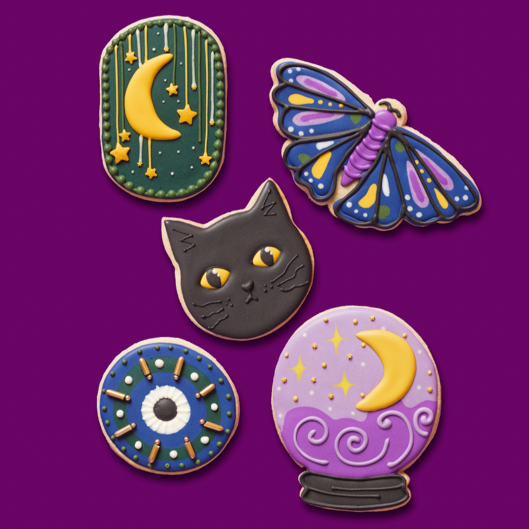 Taught by our cookie extraordinaire, Amanda, this class is everything you’ll need to start (or continue!) your journey with royal icing cookie decorating. You’ll learn about our favorite Bon Vivant cookie and royal icing recipes, proper piping bag holds, and various piping techniques to achieve different designs, including borders and flooding, wet-on-wet technique, how to create texture and dimension, and using edible paint. We will break down the decorating process step-by-step, and you’ll leave with five beautifully finished cookies! Our delicious breakfast snack spread and coffee come complimentary with this class.