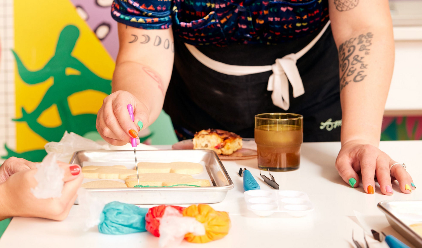 A corporate cookie decorating workshop is a hands-on team building event where your group learns cookie decorating techniques together. Our Chicago studio provides all tools, ingredients, and step-by-step instruction for a creative, interactive experience that employees will talk about for years to come.